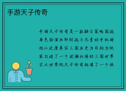 手游《天子传奇》是一款融合策略国战、角色扮演和即时战斗元素的手机游戏,以还原真实三国历史为目标,为玩家打造了一个波澜壮阔的三国世界。